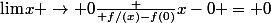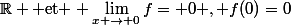 je ne comprends pas, les conditions de l'exercice précisent que f(0)=0, de plus lim f(x) = 0 quand x tend vers 0, de plus le taux d'accroissement vaut 0