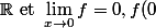 lim X² = + 00 quand x tend vers 0+ donc f(x) = eX*X² , or a l'infinie l'expo l'emporte sur tout polynome d'où lim f(x) = 0 quand x tend vers 0+