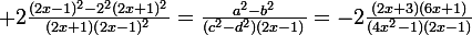^2-2^2(2x+1)^2}{(2x+1)(2x-1)^2}=\frac{a^2-b^2}{(c^2-d^2)(2x-1)}=-2\frac{(2x+3)(6x+1)}{(4x^2-1)(2x-1)})