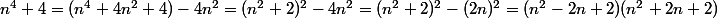 -4n^2=(n^2+2)^2-4n^2=(n^2+2)^2-(2n)^2=(n^2-2n+2)(n^2+2n+2))