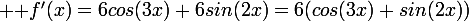 1^_Calculer f'(x),(ca fait 6(cos3x+2sin2x)