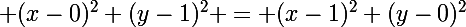 ^2+(y-1)^2 = (x-1)^2+(y-0)^2)