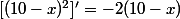 j'ai trouvé V'(x) = (1/6)*(-2)(10-x)