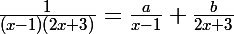1 sur (x-1)*(2x+3)= a sur (x-1)+ b sur (2x-3)