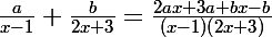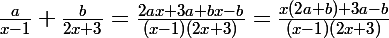 j'ai reduis au meme denominateur et je trouve : (2a+b)x +(a3-b)le tout sur (x-1) (2x+3)