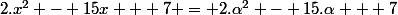 D'abord merci de m'avoir répondu, mais si dans l'équation 2x²-15x+7=0 je remplace le membre 0 par 2*²-15*+7( c'est ce qu'il dise dans l'énoncer) cela ne donnerait-il pas :