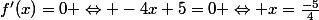 =0 \Leftrightarrow -4x+5=0 \Leftrightarrow x=\frac{-5}{4})