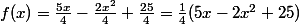 on a f(x)=(5x/4)-(2x²/4)+(25/4)