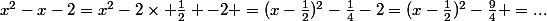 ^2-\frac{1}{4}-2=(x-\frac{1}{2})^2-\frac{9}{4} =...)