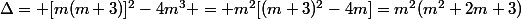 Nous avons calculer ∆ sa n'a pas marcher car on trouve un polynôme de degré 4 on décide Doncaster de diviser celui-ci par m^2 celui n'est donc pas factorisable merci