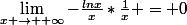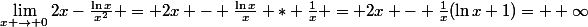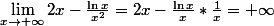 - 2x = \lim_{x \to +\infty}{-\frac{\ln{x}}{x^2}} = \lim_{x \to +\infty}{-\frac{\ln{x}}{x}} * \frac{1}{x} = 0)