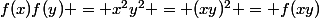 f(y) = x^2y^2 = (xy)^2 = f(xy))