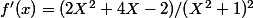 calculer f'(x), puis déterminer les abscisses des points de la courbe de f pour lesquels la tangente est parallèle à l'axe des abscisses