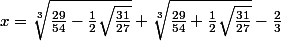 sinon si c'est vraiment ça faut te ramener à la formule de Cardan en faisant un changement de variable x=u-2/3:
