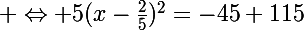 harkonen a écrit:5(x-2/5)²-115 = - 45 -->forme canonique