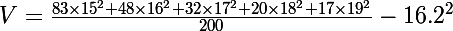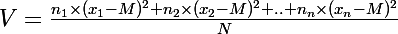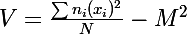 variance = (;)ni xi)²/N -M²