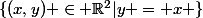 Le premier ensemble à représenter est {(x,y) ∈ R² | y = x }