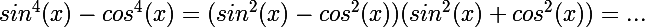 -cos^4(x)}=(sin^2(x)-cos^2(x))(sin^2(x)+cos^2(x))=...)