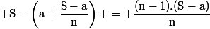 ce qui après développements et simplifications, me conduit à poser an²-(S-a) = 0.