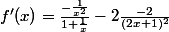 =\frac{-\frac{1}{x^2}}{1+\frac{1}{x}}-2\frac{-2}{(2x+1)^2})