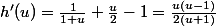 je trouve h'(u) = 1/(1+u) - 1 + u/2