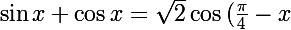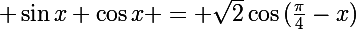 on sait que sinx+cosx=racinecarré(2)(cos(pi/4-x))
