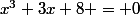 x=0 x^3+3x+8=0 je ne sais pas la résoudre.
