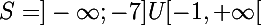 S= [- inf ; -7 ] U [-1 ; + inf ]