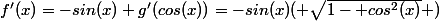 Donc c'est vrai ce que j'avais fait f'(x) =g'(cosx) =