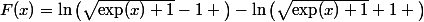 =\ln\big(\sqrt{\exp(x)+1}-1 \big)-\ln\big(\sqrt{\exp(x)+1}+1 \big)\)