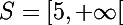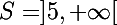 ]5;+infini[ (l'infini etant infine (normal quoi) , l'intervalle est toujours ouverte dans ce cas là )