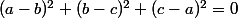 calcule (a-b)²+(b-c)²+(c-a)² ( ==0 )