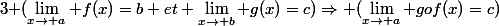 =b et \lim_{x\to b} g(x)=c)\Rightarrow (\lim_{x\to a} gof(x)=c))