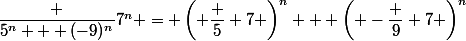 Je dois être vraiment nul.. ^^ , je comprend pas comment on peux mettre 9^n en haut ? Et pour après c'est 5x(9/7)^n ?