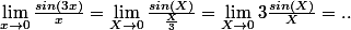 }{x}=\lim_{X\to0}\frac{sin(X)}{\frac{X}{3}}=\lim_{X\to0}3\frac{sin(X)}{X}=..)