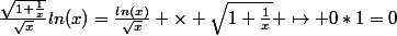 =\frac{ln(x)}{\sqrt{x}} \times \sqrt{1+\frac{1}{x}} \mapsto 0*1=0)