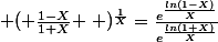 ^{\frac{1}{X}}=\frac{e^{\frac{ln(1-X)}{X}}}{e^{\frac{ln(1+X)}{X}}})