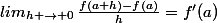 lim( f(x+h) - f(x) )/h ) = f'(0) quand h -> 0