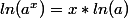 ln(x^n)=n*ln(x) (dual de (exp(x))^n=exp(n*x))
