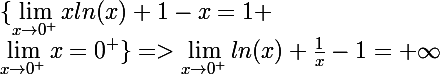 +1-x=1 \\\lim_{x\to0^+}x=0^+\}=>\Large\lim_{x\to0^+}ln(x)+\frac{1}{x}-1=+\infty)