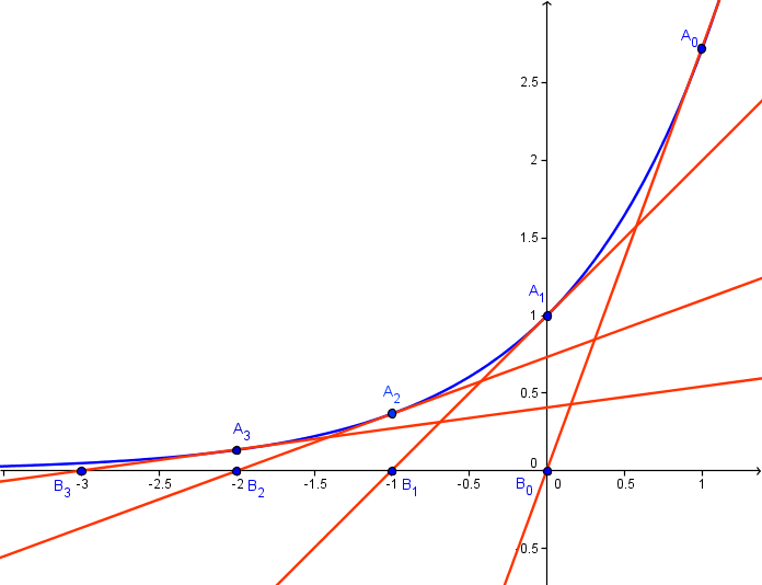 2 - On a placé sur l'axe des abscisses les points B0, B1, B2, B3 d'abscisses respectives 0, -1, -2, -3.
