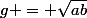 Salut, je ne sais pas si tu as la formule mais bon au cas où, je te la donne : soit a et b deux nombres positif et g leur moyenne géométrique, alors