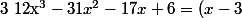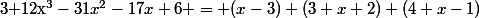 on considère le polynôme P(x)= 12x(exposaant 3)-31x (exposant 2)-17x+6