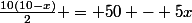 50 - 5x) = 5x + 50 + 50 - 5x = 100 cm² = 10 cm x 10 cm