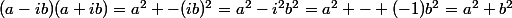 (a+ib)=a^2 -(ib)^2=a^2-i^2b^2=a^2 - (-1)b^2=a^2+b^2)