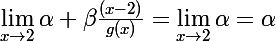 }{g(x)}=\lim_{x\to2}\alpha=\alpha)