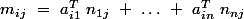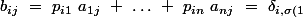 }\ +\ \ldots \ +\ a^T_{in}\ \delta _{n\ \varphi \left(j\right)}\)