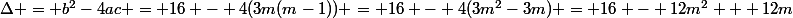 non mais le discrimiant je comprends pas moi j'ai -12m²+12m+16
