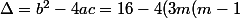 ) = 16 - 4(3m^2-3m) = 16 - 12m^2 + 12m)