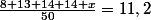 Non... en multipliant par 50 tu as 8 + 13 + 14 + 14 + x = 11,2 X ....